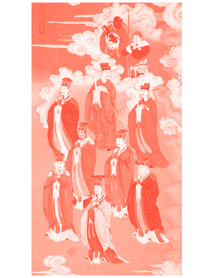Возвышенные императоры и боги пяти направлений. Рисунок на шелке, XVI век.