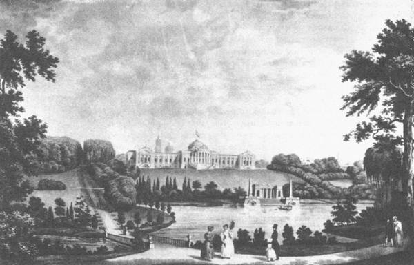 Как ни странно, этот московский ампир почти не создал цельных комплексов подмосковных, там, где среди природы, не стесненная соседней архитектурой, особенно отчетливо и прекрасно выступает в своей изолированности каждая строительная манера, каждый архитектурный вкус и почерк. Даже такие, казалось бы, ампирные усадьбы, как Кузьминки и Суханово с их Конным двором и Мавзолеем, входящими в историю мирового искусства, не были целиком ампирными. И здесь и там уже стояли ранее построенные дома во вкусе классицизма. Бесспорно, самый широкий размах дворянского строительства падает на конец 80-х и 90-е годы XVIII века. Именно тогда возникают Петровское, Остафьево, Введенское, Денежниково, Дубровицы, Рождествено, Ивановское Закревских, Ольгово, Братцево, Гребнево и многие другие усадьбы. А в Москве — дворцы Разумовских, Куракиных, Шереметевых, Талызиных, Мусин-Пушкиных, Строгановых.