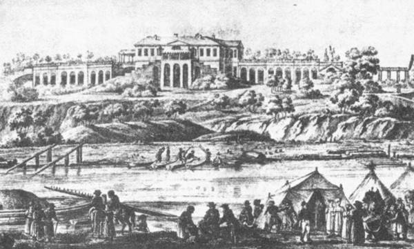 Вид господского дома в Ильинском. Гравюра середины XIX в.