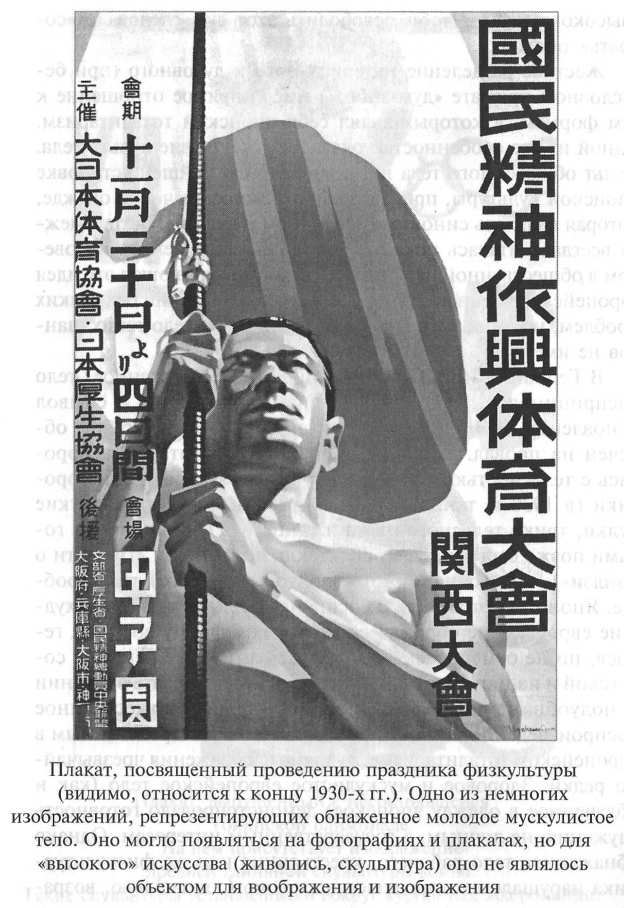 В Германии и СССР обнаженное (полуобнаженное) тело воспринималось как освобождение от прошлого и символ обновления. В Японии такой «нудистский» дискурс был обречен на провал. Культура японского тоталитаризма боролась с телесностью. Это касается не только собственно эротики (в 1930 г. танцовщицам запретили надевать короткие чулки, трико телесного цвета и танцевать канкан; тремя годами позже был запрещен спектакль по мотивам «Повести о Гэндзи»), но и обнаженного (полуобнаженного) тела вообще. Япония с готовностью воспроизводила в скульптуре худшие европейские образцы облаченных в форму военных героев, но не осмелилась заимствовать античные реплики советской и нацистской пластики. Не стали воспевать в Японии и полуобнаженное «физкультурное» тело, художественное воспроизведение которого оказалось столь востребованным в европейском тоталитаризме, — такие изображения чрезвычайно редки. Здоровое и мускулистое европейское тело (как и облаченное в одежду японское) демонстрировало готовность служению не личным, а государственным интересам. Однако обнаженное тело рабочего, крестьянина или же физкультурника нарушало сложившуюся иерархию (социальную, возрастную и гендерную), отменяло церемониальность, историю и потому оказалось для Японии неприемлемым.