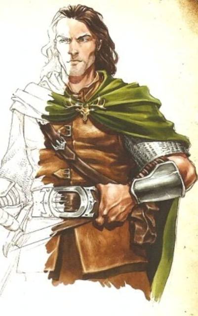 Вошедший мужчина был невероятно похож на свою модельку из игры. Высокий, под метр восемьдесят, с черными вьющимися волосами, зелеными глазами, прямым носом, он плавно шел вперед, напоминая настоящую пантеру — грациозную и опасную. Это, вкупе с хорошо выраженными мускулами и царапинами на его стальных наручах, от которых веяло незнакомой мне маной, говорило что передо мной был опытный воин уже успевший обагрить свой клинок человеческой кровью.
