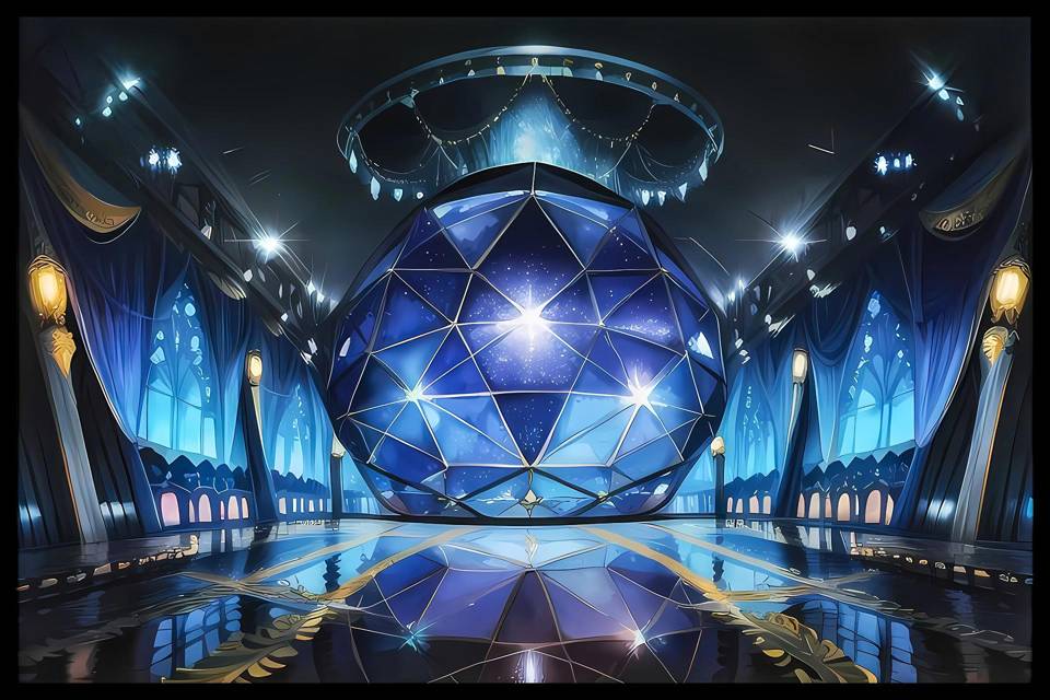 Синеющий коридор и вовсе меняется после первой успешной «миссии». Теперь это на самом деле не белый бесконечный коридор, а синий огромный зал, где на панорамных окнах проявляются синие бархатистые шторы с золотистым тиснением. А зеркальный пол отражает огромный синий шар неправильной формы, или лучше сказать некий «геоид».
