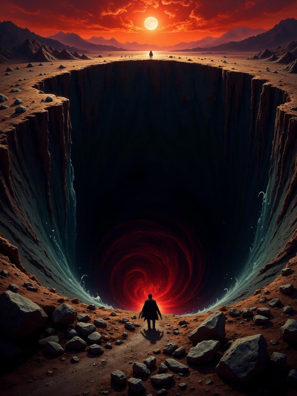 Зря он пропустил мимо ушей последнюю фразу проводника. Зря не поверил, что песок может быть черным. Черным и сверкающим без солнца. Он стоял на краю ложбины, которая начиналась за последним скалистым холмом. Как завороженный он смотрел на громадную воронку вращающегося на бешеной скорости черного поблескивающего базальтом песка. Воронка в диаметре достигала примерно сто метров. О глубине же думать не хотелось.