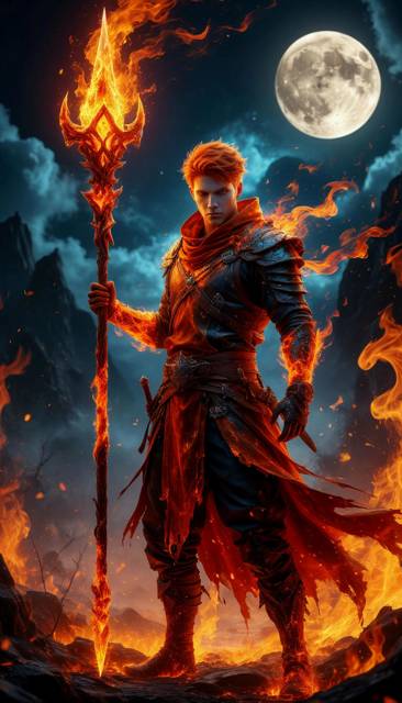 Кирилл оглянулся назад и увидел мужчину, который выглядел довольно молодо. В темной одежде. Капюшон был откинут назад, и Кирилл смог отчетливо увидеть огненно оранжевые волосы. В руке он держал копье, по которому танцевали яркие огоньки.