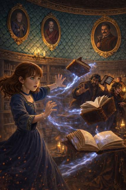 Но Ори было не остановить. Она вскинула руки и послала в бой целую стаю книг в тяжёлых обложках — они бомбардировали всех четверых заговорщиков, хлопая широкими крыльями и врезаясь в них тяжёлыми переплётами.