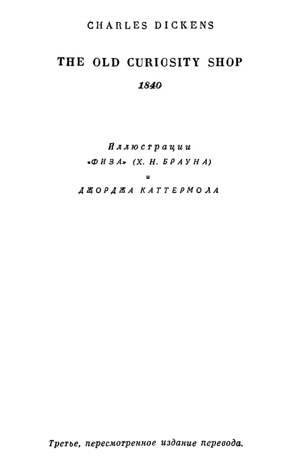 Первая глава этого романа появилась в четвертом выпуске «Часов мистера Хамфри», когда я уже убедился в том, насколько неуместна такая беспорядочность в повременной печати и когда читатели, как мне казалось, полностью разделили мое мнение. Я приступил к работе над большим романом с великим удовольствием и полагаю, что с не меньшим удовольствием его приняли и читатели. Будучи связан ранее взятыми на себя обязательствами, отрывающими меня от этой работы, я постарался как можно скорее избавиться от всяческих помех и, достигнув этого, с тех пор до окончания «Лавки древностей» помещал ее главу за главой в каждом очередном выпуске.