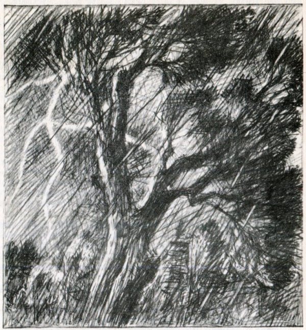 «Как же было с самого начала не понять, чем это кончится? — подумал он. — Что ж, хоть за это спасибо, объяснили… Но все-таки я жив, потому что слышу, как падают мне на лицо капли дождя. Мне больно стоять. Я чувствую, как живет мое тело. Вот и дерево раскачивается из стороны в сторону, будто хочет сдвинуться и пойти по лесу».