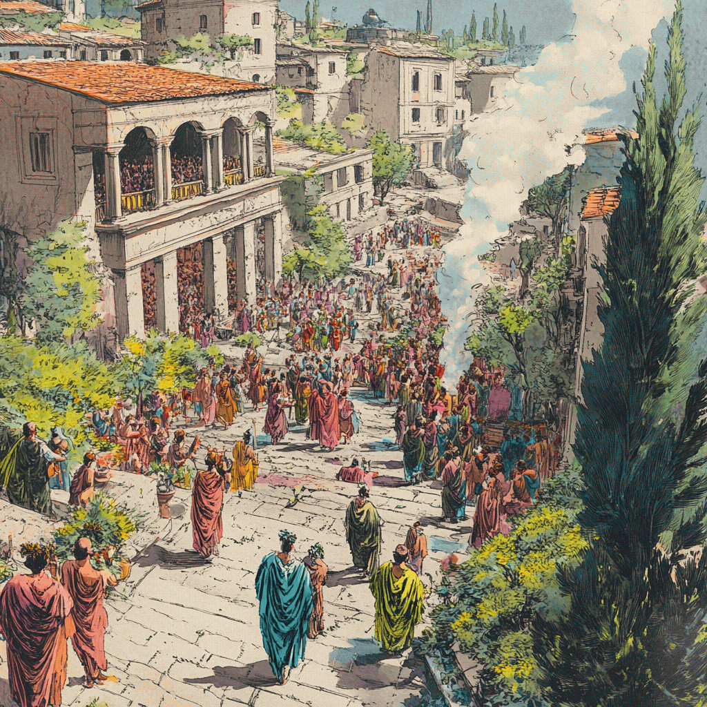 Карфаген объят был радостью, глубокой, всенародной, безмерной, неистовой; заделали пробоины в развалинах, наново выкрасили статуи богов, усыпали улицы миртовыми ветками; на перекрестках дымился ладан, и толпа на террасах казалась в своих пестрых одеждах пучками распускающихся в воздухе цветов.