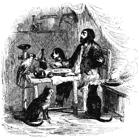 Нужно было видеть, с каким королевским достоинством я обедал один, окруженный моими слугами. Одному только Попке, как фавориту, разрешалось беседовать со мной. Моя собака – она давно уже состарилась и одряхлела, не найдя на острове особы, с которой могла бы продолжить свой род, – садилась всегда по правую мою руку; а две кошки, одна – по одну сторону стола, а другая – по другую, не спускали с меня глаз в ожидании подачки, являвшейся знаком особого благоволения.