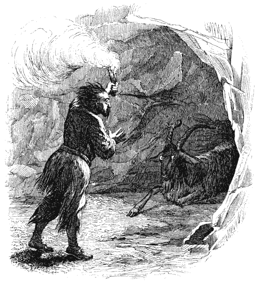 Старый козел, которого я нашел издыхающим при входе в пещеру, на другой же день околел. Во избежание зловония от разлагающегося трупа я закопал его в яму, вырыв ее тут же, в пещере, подле него: это было легче, чем вытаскивать его вон.