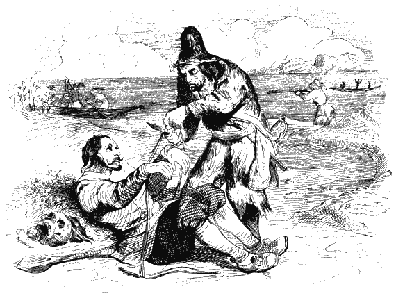 – Сеньор, разговаривать мы будем потом, а теперь надо действовать. Если вы в силах сражаться, то вот вам сабля и пистолет: берите, и ударим по врагу. – Испанец с благодарностью принял то и другое и, почувствовав в руках оружие, словно стал другим человеком. Откуда только взялись у него силы! Как ураган налетел он на своих убийц и в мгновение ока изрубил двоих на куски. Правда, несчастные дикари, ошеломленные ружейными выстрелами и внезапностью нападения, были до того перепуганы, что от страха попадали и были так же не способны бежать, как и сопротивляться нашим пулям. То же самое произошло с пятью дикарями в лодке, в которых выстрелил Пятница: двое из них упали просто со страху, не будучи даже ранены.