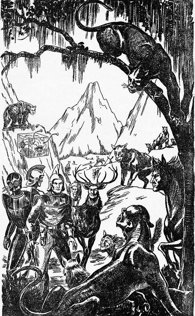 Двое обитателей луны уже исчезли в густых зарослях. Сквозь зелёный полумрак донёсся пронзительный, нестройный крик.
