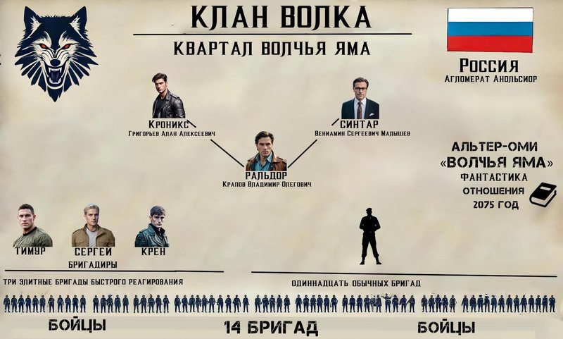 Например, клан Волка располагает 14 бригадами: тремя элитными (по 25 человек каждая) для быстрого реагирования на чрезвычайные ситуации и одиннадцатью стандартными (по 20 человек), которые занимаются рутинными обязанностями.