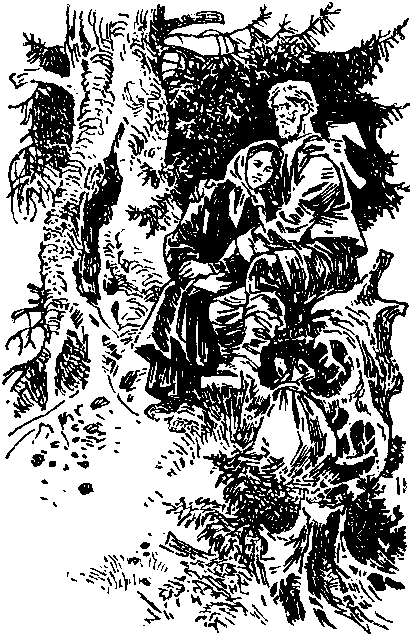 «Ушел вот я из дому,— думал Тимоха,— в тайгу ушел. А куда же больше? Скрылся от людей, от родной матери скрылся. Теперь мне тайга матерью стала, теперь от нее никуда не уйдешь... Видно, всю жизнь так проживу, и никто знать не будет. От царева закона ушел... А не ушел бы — так тоже не сладко. Да вот Фиса... Увел и ее от людей. В лес увел, нужду хлебать. Мне-то ладно, а ей как будет?»
