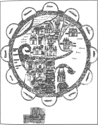 Надпись на полях карты, составленной в Люнебурге около 1284 г. – Средневековье в его памятниках. С. 288