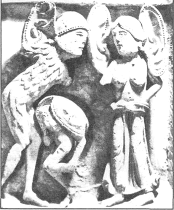 В этих диковинных странах жили пигмеи, которые сражались с журавлями, и великаны, воевавшие с грифонами. Верили, что там обитают люди со ступнями, повернутыми назад, и с восемью пальцами на каждой ноге; существа, которые ложатся на спину и поднимают вверх огромную единственную ногу, чтобы спастись от солнца; безголовые монстры с глазами на животе. Все эти ужасные антропоморфные и зооморфные чудовища, повествования о которых возникли еще в античности, все эти «чудеса Индии» стали достоянием средневековой географии. Их встречаем на картах, миниатюрах трактатов о животных – «физиологов» и «бестиариях», в романской скульптуре (рис. 6). Изобилует чудесами и фантастическими чудищами Эфиопия, расположенная у экваториального океана вдоль южной границы известного мира. В ней находится Саба (Сава) – столица царицы Савской.