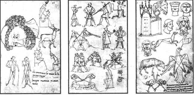 Рис. 47. Альбом Виллара де Оннекура Построение фигур людей, животных и птиц [192]