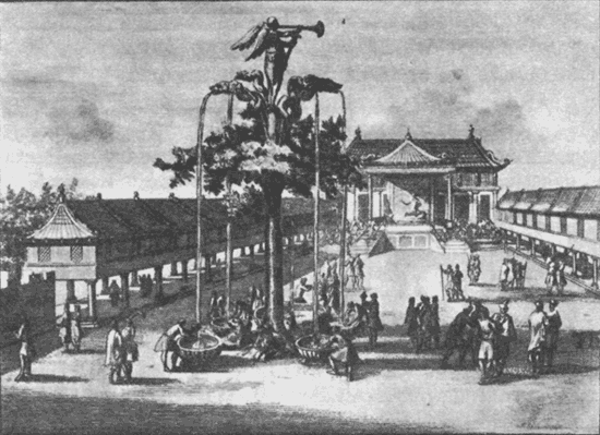 Рис. 53. Серебряный фонтан во дворце Мункэ хана, сооруженный Вильгельмом Буше (реконструкция французского иллюстратора XVIII в) [209]