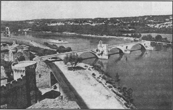 С Авиньоном связана история молодого пастуха Бенезета, которому сам Христос повелел выстроить мост на Роне (рис. И). Юноша убедил епископа и земского судью, собрал тысячи рабочих, нашел в римских руинах необходимые материалы и к 1189 г. мост завершили. Впоследствии Бенезета похоронили в часовне на мосту и канонизировали. Так называемый большой мост в Париже воспет Ги Базошским, регентом церкви в Шалоне (XII в.):