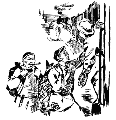 На станции Тумнин в вагон вошли новые пассажиры в несколько необычных одеждах и принесли с собой запахи речной свежести, лесных трав. Один из них нес огромного тайменя. Расстелив на полу свой резиновый плащ, он положил на него рыбу, и таймень сильно забил хвостом.