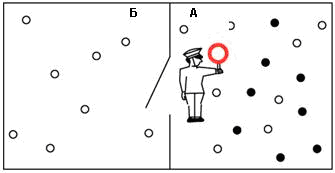 В 1871 году Максвелл, анализируя второй закон термодинамики, предложил модель названную позже «парадоксом Максвелла» и якобы его нарушающий. Представьте себе теплоизолированный резервуар заполненный газом. Молекулы газа, как известно, будут двигаться с разными скоростями, а усредненная скорость движения всех молекул даст его температуру, которая и есть мера движения молекул. Теперь разделим резервуар на две части перегородкой с отверстием, а у отверстия поставим некое устройство которое будет пропускать из резервуара А в резервуар Б только те молекулы что имеют скорость больше усредненной. В реальности такое устройство создать, понятное дело, невозможно, но мы ведем речь всего лишь о модели.