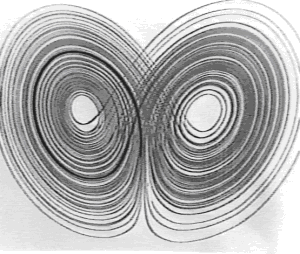 А.Ф. Иоффе в своих лекциях приводил интересный пример, показывающий насколько сильно начинают влиять даже самые незначительные возмущения, если нам требуется высокая точность измерений (т. е. максимальная информация) «Для большей наглядности вообразите себе гипотетическую ситуацию, когда для предсказания эволюции системы на один день вперед требуется знание начальных условий с точностью 10-3, на два дня — с точностью 10-6, на три — с точностью 10-9 и т. д. В этой ситуации время предсказания увеличивается в арифметической прогрессии, а точность задания начальных условий — в геометрической. Чтобы предсказать на 100 дней вперед, требуется уже немыслимая точность — 10-300! Даже если бы наши приборы и позволяли проводить такие измерения, например, температуры и давления, необходимые для прогноза погоды, то возмущение, вносимое взмахом крыльев обыкновенной бабочки, намного превысило бы эффект, связанный с неточностью этих измерений (или, другими словами, в этой ситуации для долговременного прогноза погоды надо было бы учесть всех бабочек, живущих на Земле в настоящее время). В этом случае, несмотря на детерминированное описание процесса, для долговременных прогнозов необходим статистический, вероятностный подход». Любопытно, что аттрактор Лорнеца являющийся «решением» уравнения Навье-Стокса похож на бабочку! Термин «эффект бабочки» ввел Эдвард Лоренц. И действительно, взмах крыльев бабочки где-нибудь в Канзасе, может вызвать ураган в Оклахоме!