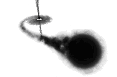 Компьютерная модель иллюстрирующая процесс «пожирания» звезды черной дырой.