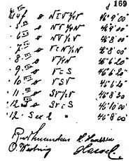 Страница из записной книжки Амундсена с записями наблюдений, произведенных на Южном полюсе. Подписано: Р. Амундсен, О. Вистинг, X. Хансен, Хассель