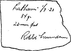 Одна из фальшивок, циркулировавших в Норвегии в связи с исчезновением Амундсена. Записка, якобы подписанная Амундсеном и извлеченная из бутылки, принесенной течением