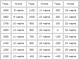 Они показаны с самого начала на 20-е числа месяцев марта, июня, сентября и декабря. Из приложенной же таблицы мы видим, что на эти числа как равноденствия, так и солнцестояния приходились по Юлианскому календарю только в IV веке нашей эры (табл. II), а в первом веке до нее они приходились не на 20-е, а на 23-и числа своих месяцев. Определение же равноденствий и солнцестояний является не последствием, а основой всякого солнечного календаря.