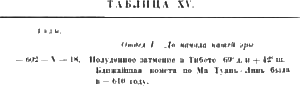 Вот здесь на таблице XV собраны мною все полные (как требуется в пророчестве солнечные затмения, имевшие место около полудня в бассейне Средиземного и Персидского морей от минус 602 года. Для краткости я схематизировал их и здесь, обозначая сначала год, затем (римской цифрой) месяц и в конце — день месяца.