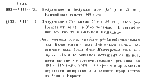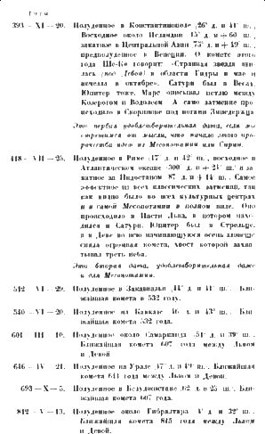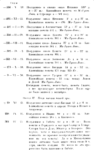 Обратитесь к каталогу комет Вильямса, составленному по китайским летописям, [52] и к канону затмений Гинцеля, [53] и вы сейчас же найдете по ним это сочетание кометы и затмения в районе Средиземного моря в полном виде только в V веке нашей эры, а до тех пор не было ничего подобного даже от минус тысячного года.