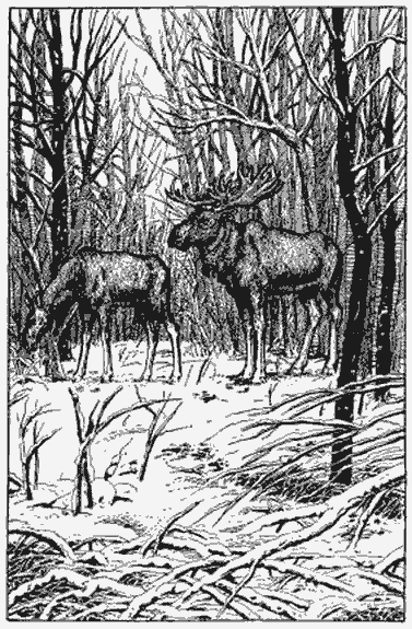 Вскоре ударили морозы. Лось почувствовал, что вот-вот сбросит свои рога, — он даже желал поскорее освободиться от них, слишком тяжелых, затруднявших движение в чаще, где стало сбиваться небольшое стадо: к ним присоединилась еще одна пара, давно знакомая ему, и вовсе незнакомый лось с черной бородою, сломанным рогом и надорванным ухом.