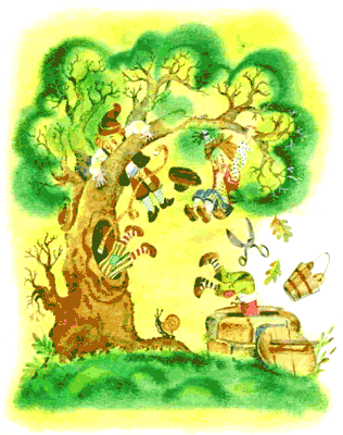 Наши-то портныеХрабрые какие:«Не боимся мы зверей,Ни волков, ни медведей!»А как вышли за калиткуДа увидели улитку —Испугалися,Разбежалися!Вот они какие,Храбрые портные!