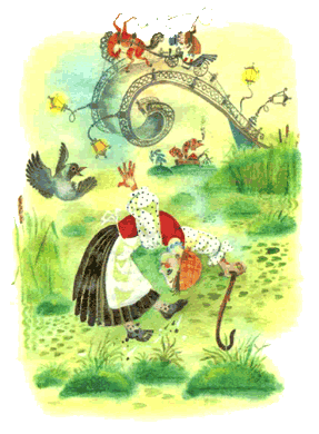 А за скрюченным мостомСкрюченная бабаПо болоту босикомПрыгала, как жаба.И была в руке у нейСкрюченная палка,И летела вслед за нейСкрюченная галка.
