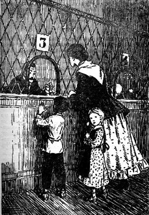 Мы с сестрой долго сидели в полутёмном высоком коридоре на железной скамейке. Сторожа бегали с бумагами, хлопали двери. Потом мать вернулась, схватила сестру за руку, и мы побежали. Комната, в которую мы вошли, была разделена барьером, и я не видел, с кем говорила и кому униженно кланялась моя мать. Но я услышал сухой, равнодушный голос, и этот голос, к моему ужасу, говорил то, на что только я один во всём мире мог бы основательно ответить.