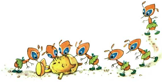 — Пойдём с нами — увидишь, — говорят муравьишки и ведут его к себе.
