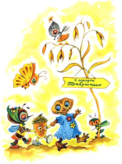 У Желудька от радости на глазах показались слезы, а горло перехватило от волнения. Он и встать не успел, как добрые жуки и мотыльки подхватили его и, ласково жужжа, повели в городок.