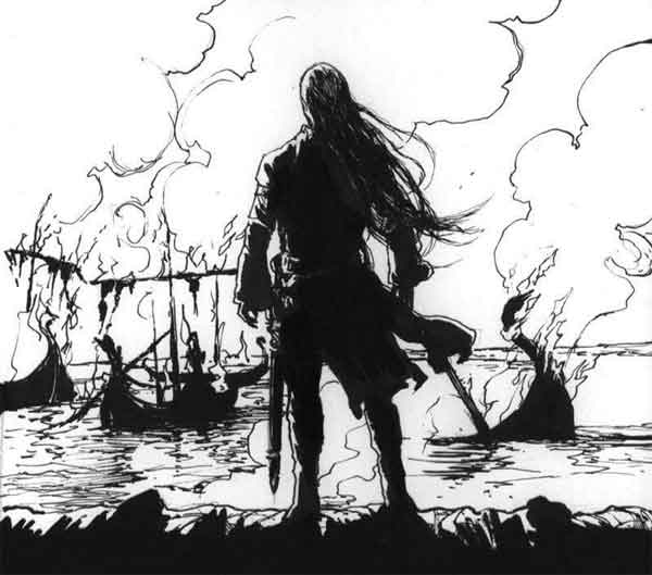 Отцовское наследство мы добыли, Его у нас теперь не отобрать. Но обжигают руки Сильмариллы… Как страшно мы с тобой ошиблись, брат! Нам Клятва жить спокойно не давала. Сражаться в ослеплении своем Готовы были мы хоть против Валар, Хоть против мира целого — вдвоем. Никто на нас оружие не поднял, Никто нам к бегству путь не преградил. Но не уйти ни от огня в ладонях, Ни от огня отчаянья в груди. Так значит, пали зря отец и братья? Мы Право потеряли, зло творя. Убийства в Альквалондэ, в Дориате… Шесть сотен лет войны и крови — зря?! Над Средиземьем битвы пролетели, Лик мира изменил Великий Гнев, Среди равнин открылись в бездну щели, Вихрь огненный бушует в глубине. Но пламя — то, что сжечь мне руку хочет, И то, что сердце жжет, — сильней стократ. Сегодня — День Свершения Пророчеств. Я ухожу в огонь. Прощай же, брат! [100]100