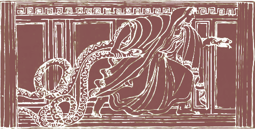 Каждый вечер выходила она к воротам дворца, чтобы дождаться нагруженных добычей слуг и утомлённого охотой мужа. Каждый вечер закатное солнце, как бывало в Микенах, снова одевало её в свои пурпуровые одежды. Тут однажды на пороге дворца освещённую алым светом зари Алкмену увидел могучий Зевс, самый сильный из всех греческих богов, и, увидев, полюбил её с первого взгляда.
