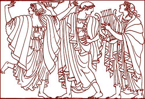 В тумане проходят мимо него неведомые рыжие, точно львиная шкура, острова. День за днём великий Гелиос-солнце, выходя из морских волн поутру, к вечеру снова опускается в море на своей огнесветной колеснице. День за днём текут волны, убегая за корму, и всё дальше назад уходят берега милой Греции.