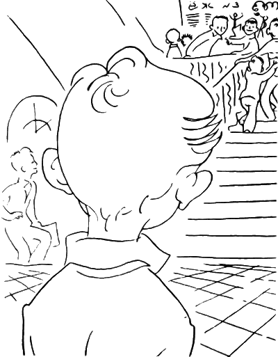 Новичок отыскал дверь, на которой была табличка 4 «А», отворил ее смело: наверное, думал, что в классе никого нет, а там — Сашка Рындин. Длинный, курносый, конопатый и озорной. Он давно сюда явился, успел уже испачкать классную доску: тетя Поля протерла ее тряпкой, а Сашка изрисовал загадочными носатыми рожицами и сейчас развлекался тем, что переставлял чернильницы на партах: кому — получше, кому — похуже.