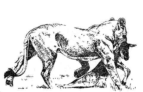 Вспоминаю, как однажды я охотился с европейским принцем и принцессой близ Касигау в районе Вой в Кении. Мы заметили приближающегося к нам буйвола-самца и залегли, чтобы позволить ему подойти поближе. Буйвол подбежал к нам на расстояние около пятидесяти ярдов. Принцесса стреляла из мелкокалиберного ружья и была полна решимости убить буйвола без посторонней помощи. Она ранила буйвола в грудь. Если бы выстрел был сделан из ружья крупного или даже среднего калибра, то буйвол был бы убит. Однако в данном случае раненому зверю удалось повернуть и скрыться в густых зарослях кустарника. Мы посмотрели на след и обнаружили капельки крови. В обязанности охотника входит определение ранения по виду крови. Кровь из легких — светлой окраски, следовательно, идти по следам придется долго; кровь из почек темная — значит зверь ранен смертельно; кровь из туловища или конечностей по окраске промежуточная и показывает, что ранение несерьезное. В данном случае окраска крови показывала, что нам предстояло иметь дело с раненым зверем, который будет яростно драться за свою жизнь. В общем перспектива была не из приятных.