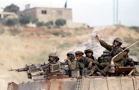 Мы выползли на броню, кто-то на переднем бронетранспортере начал махать израильским флагом. Габассо тоже выудил откуда-то крохотный флажок и и замахал им.