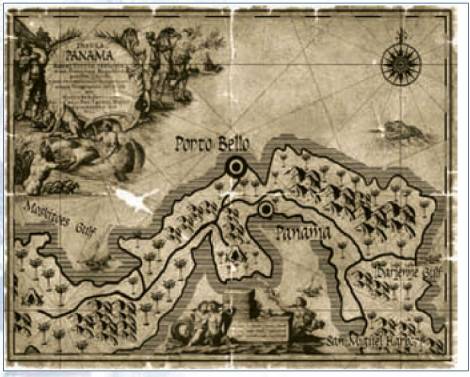 В январе 1680 года началась первая экспедиция буканьеров в Тихий океан. Среди главарей имелись такие известные личности, как Бартоломью Шарп и Джон Коксон. На пути в Портобело они высадились на берег в 20 лигах от города и после четырехдневного изнуряющего похода, во время которого «многие ослабели, будучи три дня без еды и с порезанными из-за нехватки обуви ногами», добрались до места. Их появление оказалось настолько неожиданным, что город быстро сдался и в одно мгновение был разграблен, поскольку до пиратов уже дошли известия, что приближается испанское подкрепление. В результате налета каждый получил огромную долю: сто частей трофеев на восьмерых. Добравшись до кораблей, буканьеры поплыли на север до Бока-дель-Торо, где остановились, чтобы набрать воды. Там к ним присоединился отряд под предводительством Ричарда Сокинса и Питера Хэрриса, «солдатов храбрых и решительных». Объединенные силы высадились в заливе Дарьен и двинулись к Тихому океану, по пути сделав остановку, чтобы напасть и разграбить небольшой городок Санта-Марию.