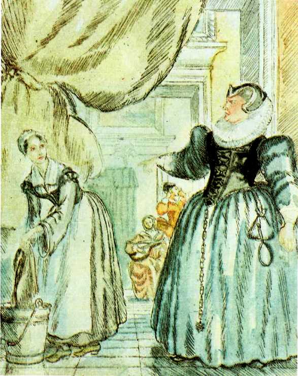Жил однажды богатый и знатный человек. У него умерла жена, и он женился второй раз на такой бессердечной гордячке, какой больше не сыщешь. У неё было две дочери, во всём похожие на мамашу, — такие же заносчивые злюки. А у мужа была дочка на редкость кроткая и ласковая, вся в покойную свою мать, добрейшую женщину в мире.