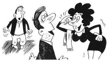 I вось зноў з'яўляецца Адам на работу. Левае вуха нагадвае адбіўную. А пад вокам з добры кавун гуз.