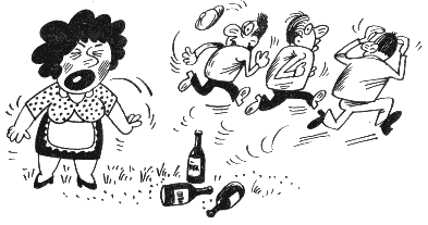 Пакуль войкалі ды ахалі, пакуль давалі парады, Адам Баравік пасля чарговага выхаднога з'яўляўся з новымi сінякамі. I раптам певень-забіяка трапіў зуху-вадзіцелю Мікіце пад колы. Усім калектывам віншавалі Баравіка. Маўляў, скончыліся твае пакуты.