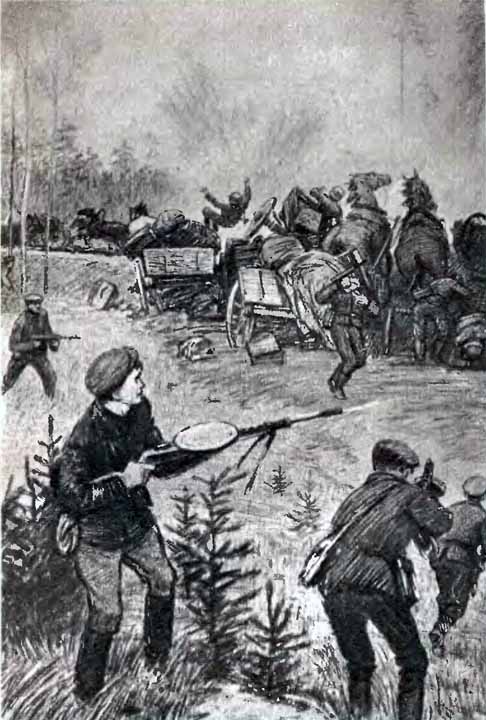 Командиры двинулись к своим отрядам, и вскоре Рыгор увидел на дороге партизан. Сначала они шли по одному и маленькими группками, а потом — отделениями, взводами. Они растекались в разных направлениях, окружая Родники.