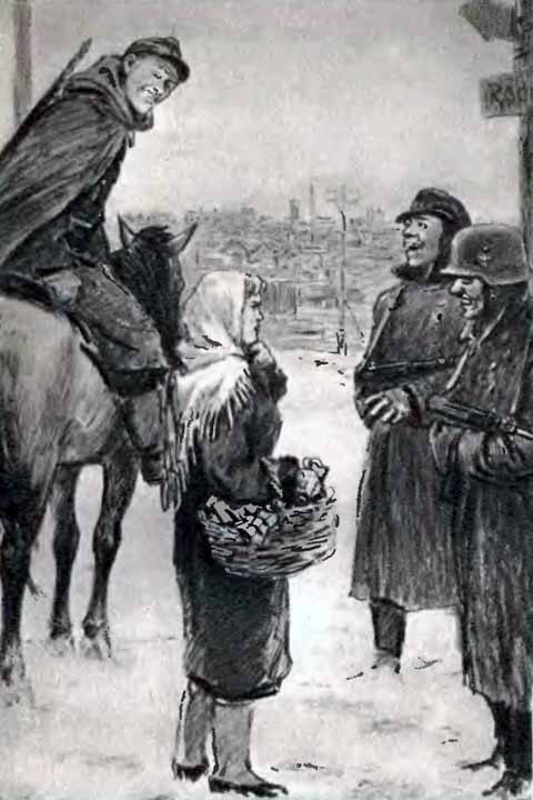 Он пришпорил коня и поскакал. Словно гора свалилась с Надиных плеч. Она облегченно вздохнула и, переждав, пока Бошкин скроется за поворотом, повернула в переулок. На минутку остановилась у двора бывшей конторы «Заготскот», расположенной на углу переулка и Зареченской улицы. Теперь здесь помещалась немецкая торговая контора «Восток». Возле нее было многолюдно. С корзинами и мешками, с гусями и курами в руках в длинной очереди толпились люди. В стороне, под высоким и плотным дощатым забором, стояло несколько крестьянских телег. За большими стеклами окон были видны два пожилых немца. Покрикивая время от времени на покупателей, они бойко торговали.
